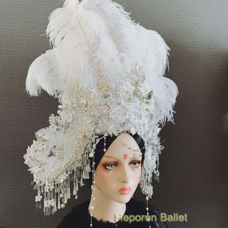 Addition Information of Photo studio exaggerated national tide headdress hat feather hair accessories catwalk competition or headwear for show costume